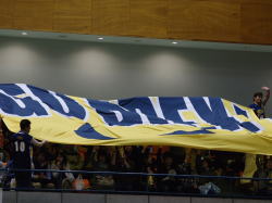 試合開始前には、巨大フラッグが2階席を通り過ぎた。