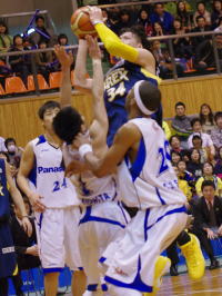 また、6分を過ぎたところで木下選手がファール4つ目となり交代し、田臥選手のスティールから田中選手が決め57対59の2点差まで詰め寄るが、木下選手から変わった阿部選手がフリースロー、3Pを決め60対67とパナソニックが再び点差を広げる。