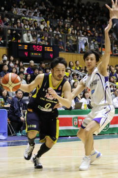 その後も田臥のレイアップやロシターのジャンプショットで得点するが、三菱も#18中東のレイアップや#32の伊藤がジャンプショットを決め、一進一退の攻防が続く。