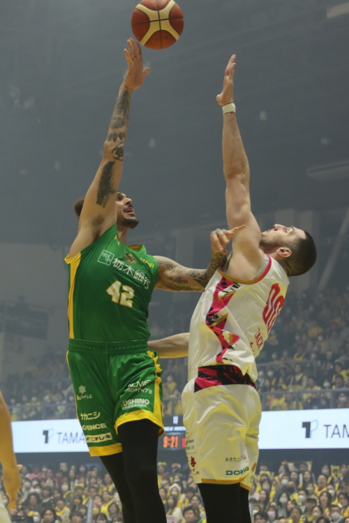 第1Q、フォトゥのフックシュートで先制したが、秋田ノーザンハピネッツに2本の3Pシュートを決められるなど連続10得点を許し、21対29で第1Qを終了。